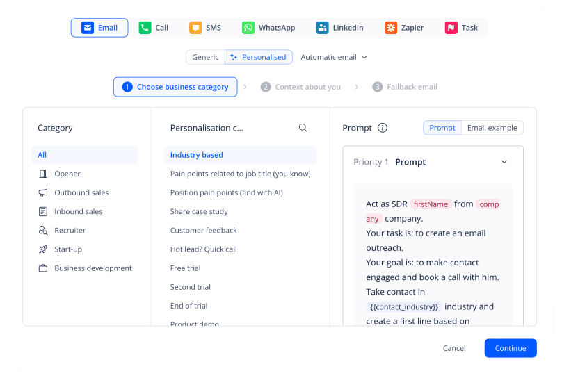 If you’re serious about your outreach, leverage multichannel outreach sequences with automated, conditional touchpoints across email, LinkedIn, WhatsApp, SMS, and calls to spark better engagement.